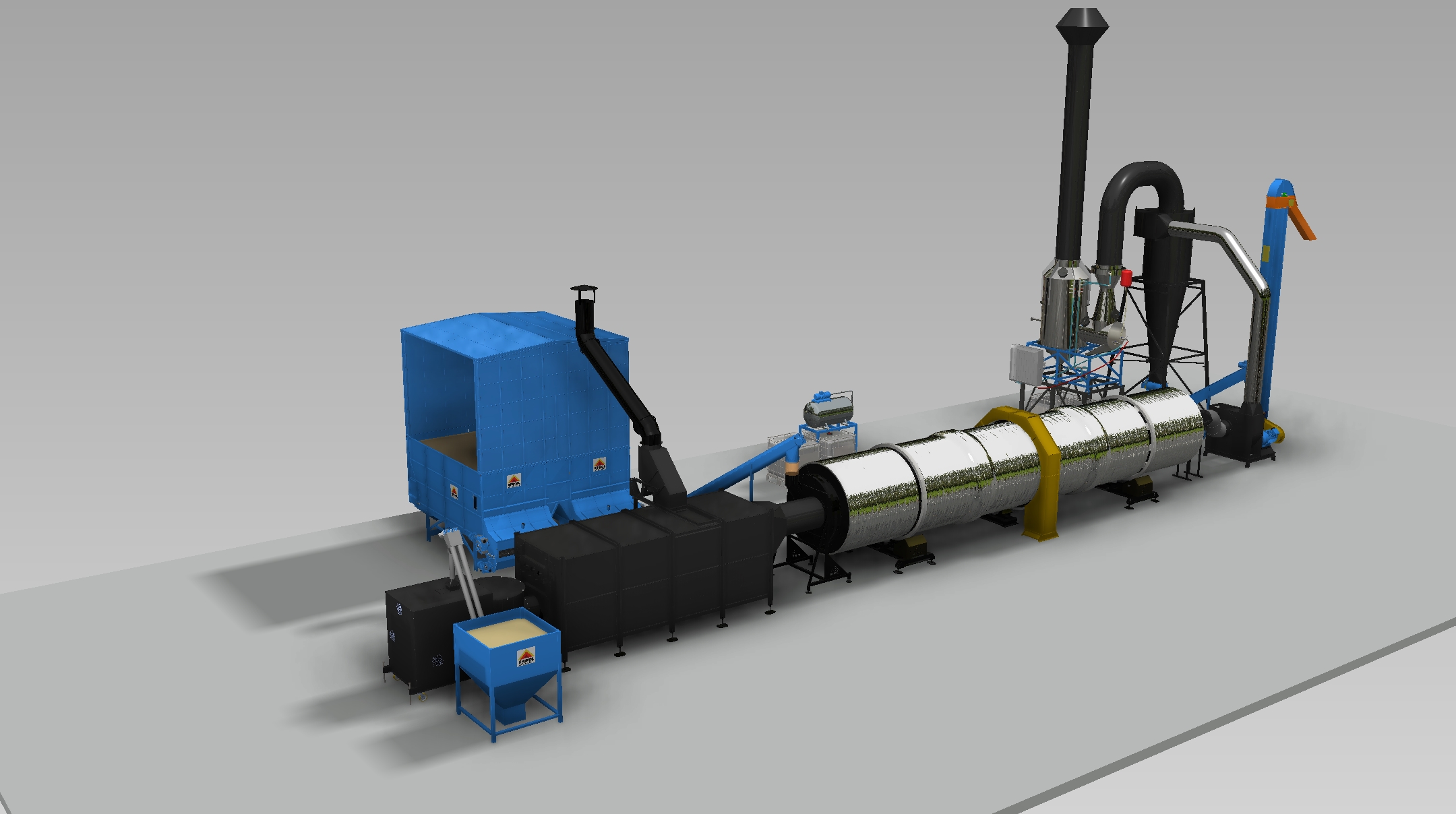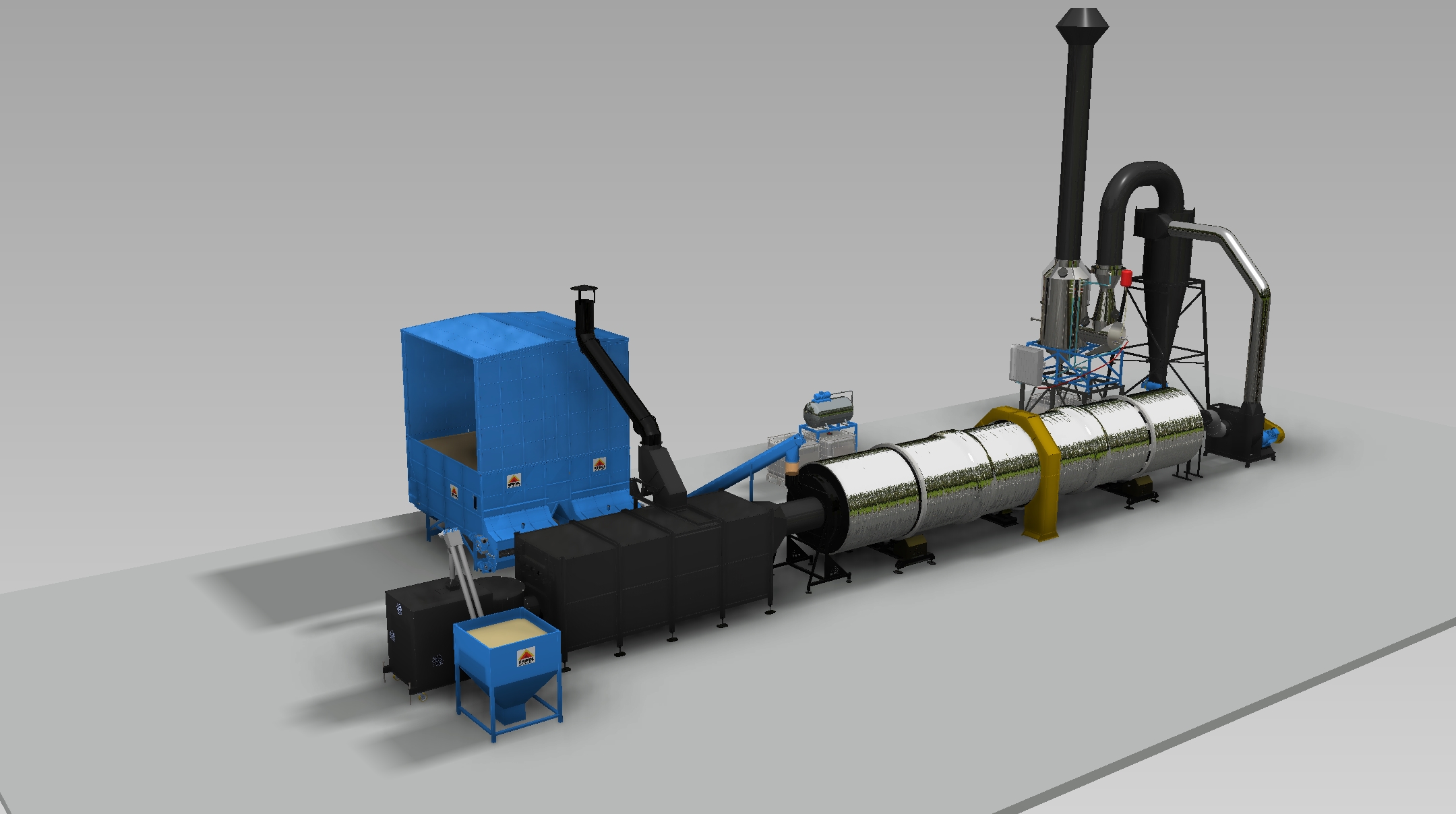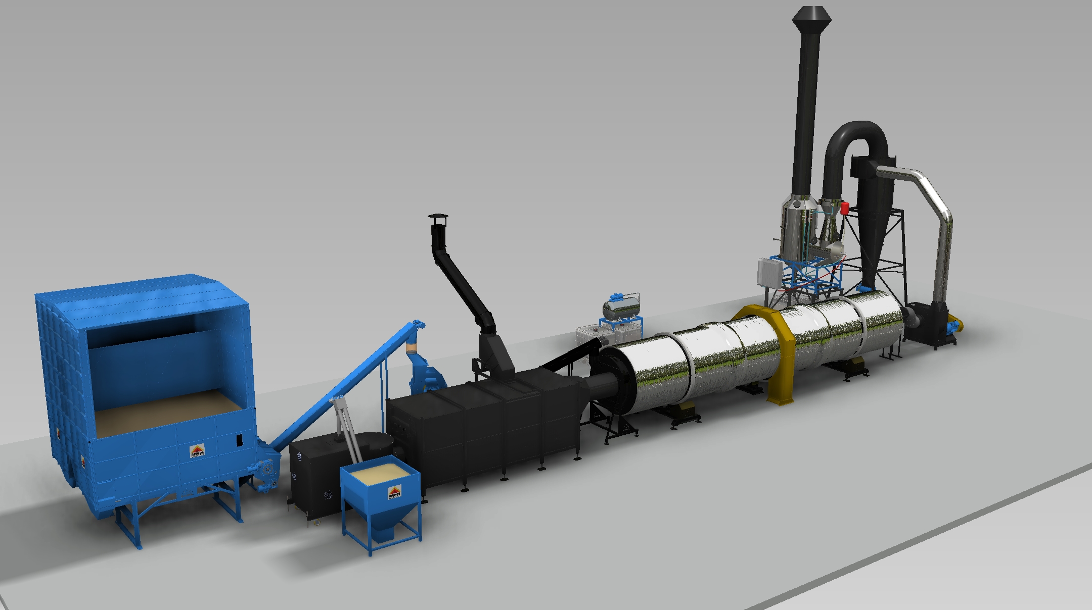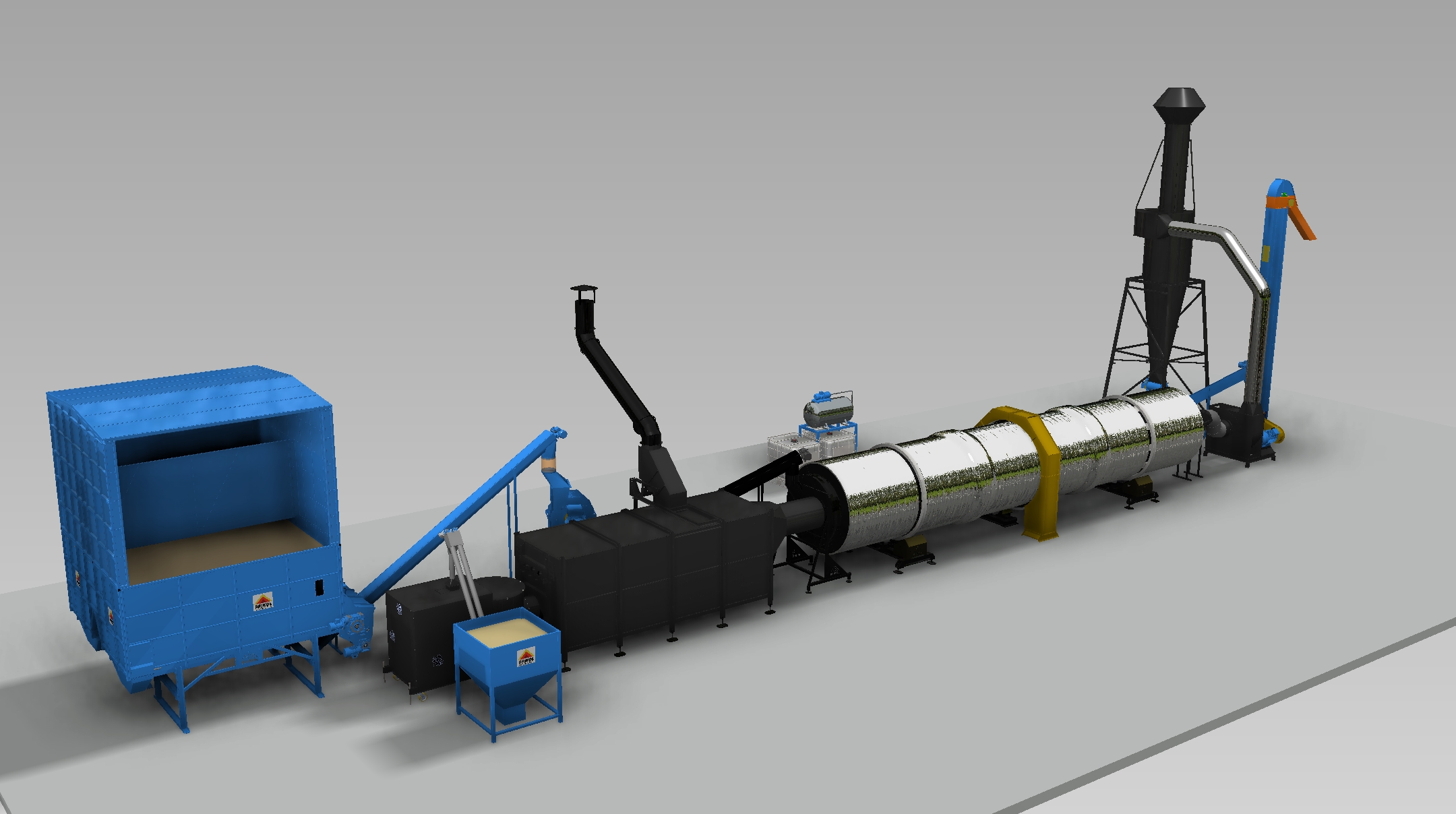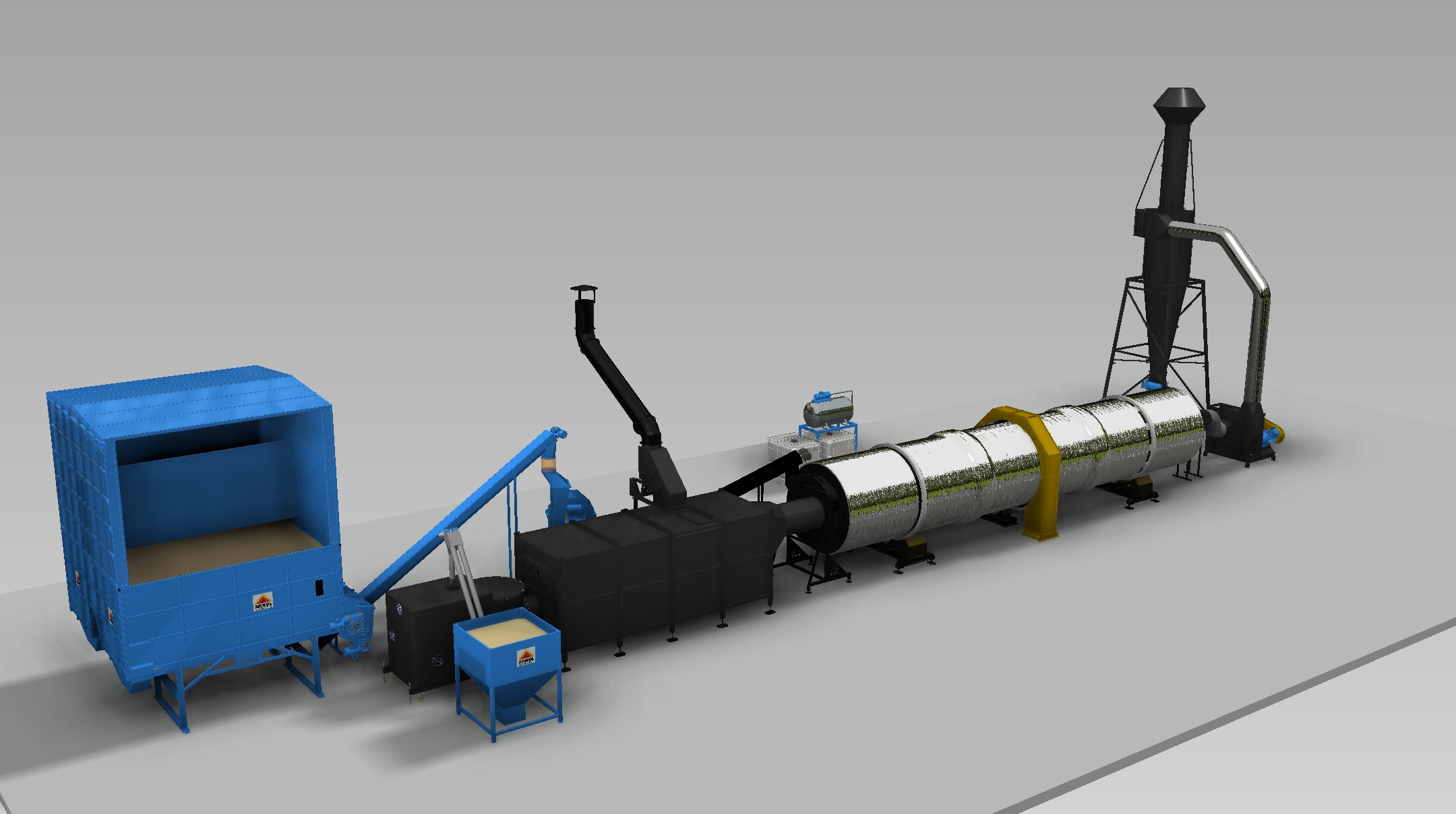 Suszarnia bębnowa 5 generacji. Produkowane w oparciu o 15-letnie doświadczenie, suszarnie bębnowe spełniają najwyższe standardy jakości i sprawności energetycznej. Fakt połączenia automatycznego palnika pelletowego z zaizolowanym bębnem oraz odzyskiem ciepła sprawia, że sprawność jest bez strat. W połączeniu z autorskim sterowaniem HMI i systemem PPOŻ. Z auto testem sprawia, że praca jest praktycznie bezobsługowa. Błąd ludzki wyeliminowany w 100%.